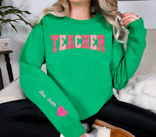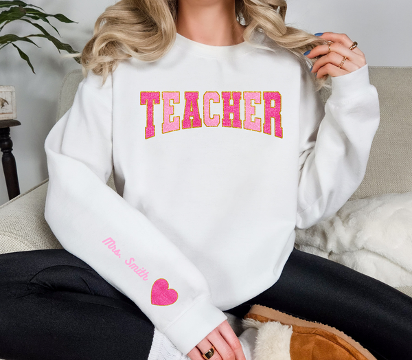 Make your valentine's day extra special with this teacher-inspired sweatshirt. Show off your dedication to education and style in one comfortable statement piece. The perfect gift for the teacher in your life!